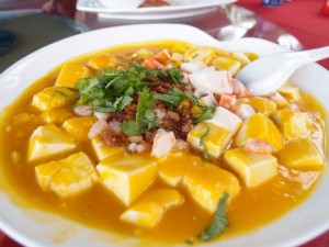 南瓜汁煮豆腐~ 這個豆腐麻麻地, 話明係南瓜汁, 很勉強才吃到有南瓜味, 這樣已經不合格吧! 不過要讚是豆腐很滑, 好香豆味!!