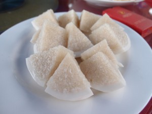 海南椰子飯~ 又是另一款海南名物!! 幾乎去所有餐廳都會點到的一個飯~~ 糯米釀在椰子肉上, 有點像在泰國吃芒果黑糯米。只是芒果換上椰子, 黑糯米換上白糯米!! 哈哈~ 糯米飯很香的椰子味, 好味!! 最後我一個人吃了兩個半!!! 肥死了!!