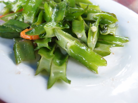清炒四角豆~ 四角豆也是海南名物, 聽auntie說只有海南島才有得食, 去別個地方也沒有。我一向喜歡吃豆類或蔬菜, 真的從未吃過這個! 我吃第一口就愛上了, 口感很爽, 勁有咬口, 食完感到好fresh, 而且沒有豆渣, 非常好呀!! 大家去海南島, 一定要叫來吃!!