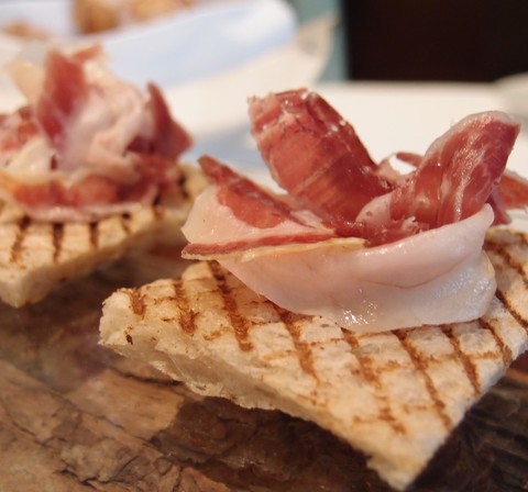 Field還有另一部份, 就是以下這個Culatello Ham跟剛好烤過的小多士~ Culatello Ham油脂分佈適中, 味道甘香, 跟Field的白露荀露伴乾黑橄欖碎一起吃,更能提高白露荀的鮮味!!