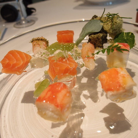 這個RAW是Athena點的, 我這個為食鬼分了一點來吃。這個RAW有蘇格蘭的三文魚及加拿大來的大蝦的刺身, 還有阿拉斯家蟹肉。三款不同的海鮮佐以旁邊的青瓜水來吃, 鮮味加倍提升, 這個食法很特別呢~
