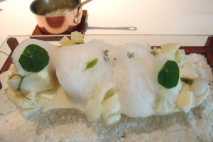 賣相夠晒特別, 簡單來介紹一下, 這碟是大比目魚配椰菜花。details一點來說說, 魚上面的泡抹是用椰菜花打出來的, 細緻的泡沫跟煮得剛好超滑的魚肉一起進食, 口感非常滑溜。