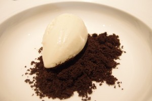 這款甜品叫Oreo, 上檯的時候, 就只見到Oreo碎和Vanilla雪糕。轉個頭來, 侍應就拿著一些Chocolate mousse在我們面前唧在Oreo碎上~