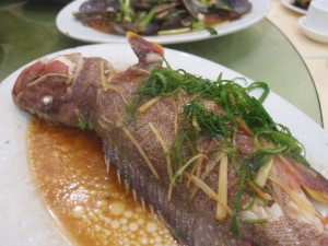 清蒸海上鮮… 老實講, 我真係看不出這條是什麼魚, 但我只想講, 蒸得太耐, 魚肉”鞋”左, 浪費了!