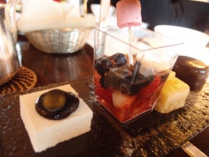 最後一層就是今次的戲玉 – 四款參考自周鐵海大師的作品做出來的甜點。