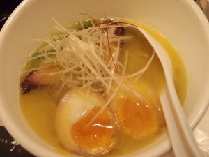 餐牌上有四款拉麵選擇, 因為是第一次來, 所以選了最簡單的原味雞白湯拉麵, 加了一隻熟蛋。之前看過網上的食評, 有些人說熟蛋真的是熟蛋, 而不是溏心蛋。