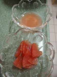 4) 西柚去皮, 將西柚肉取出, 切成小塊。