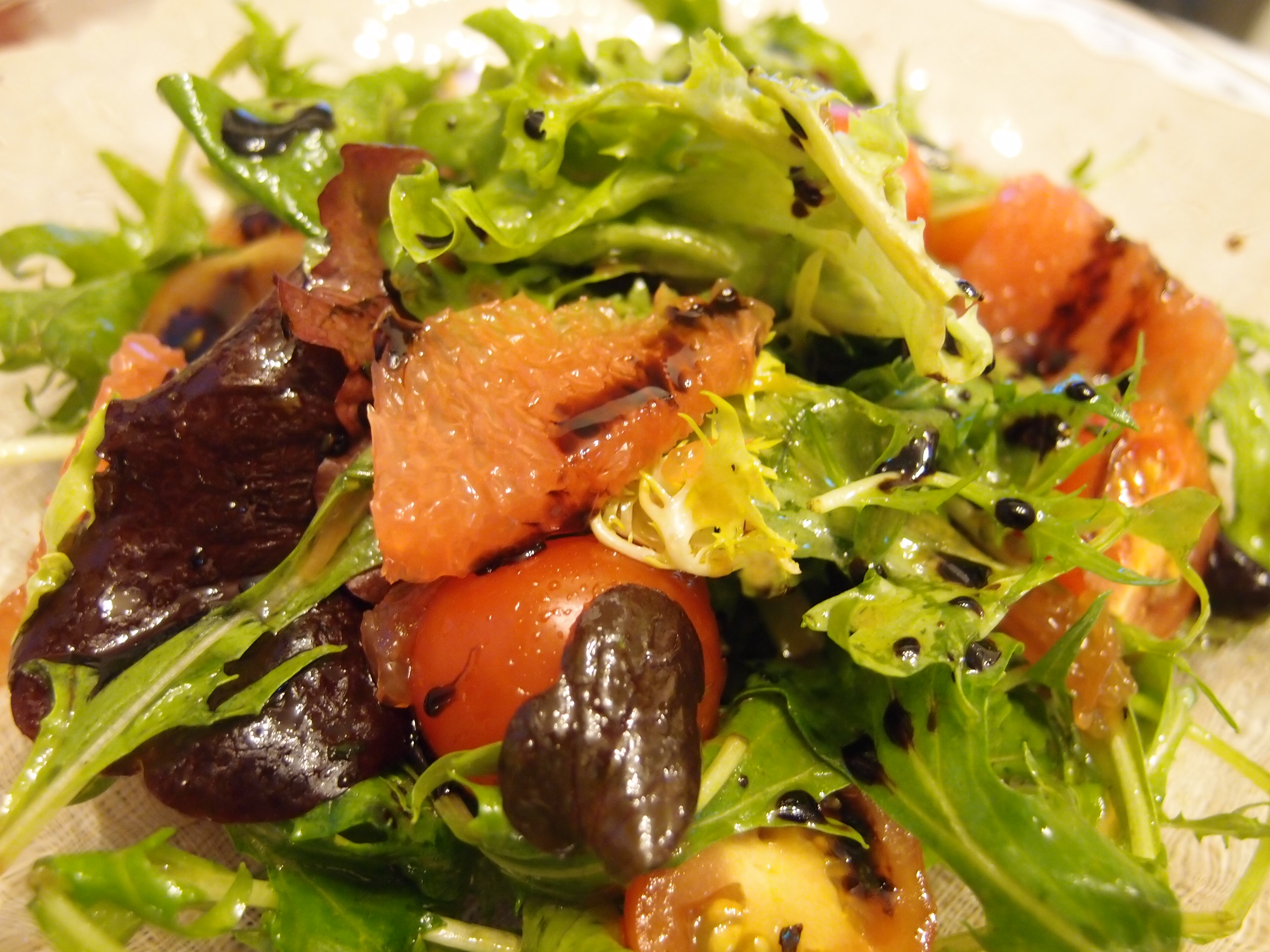 3) 先將沙律上碟, 最後在最上層唧上適量意大利黑醋糖漿, 即成。
