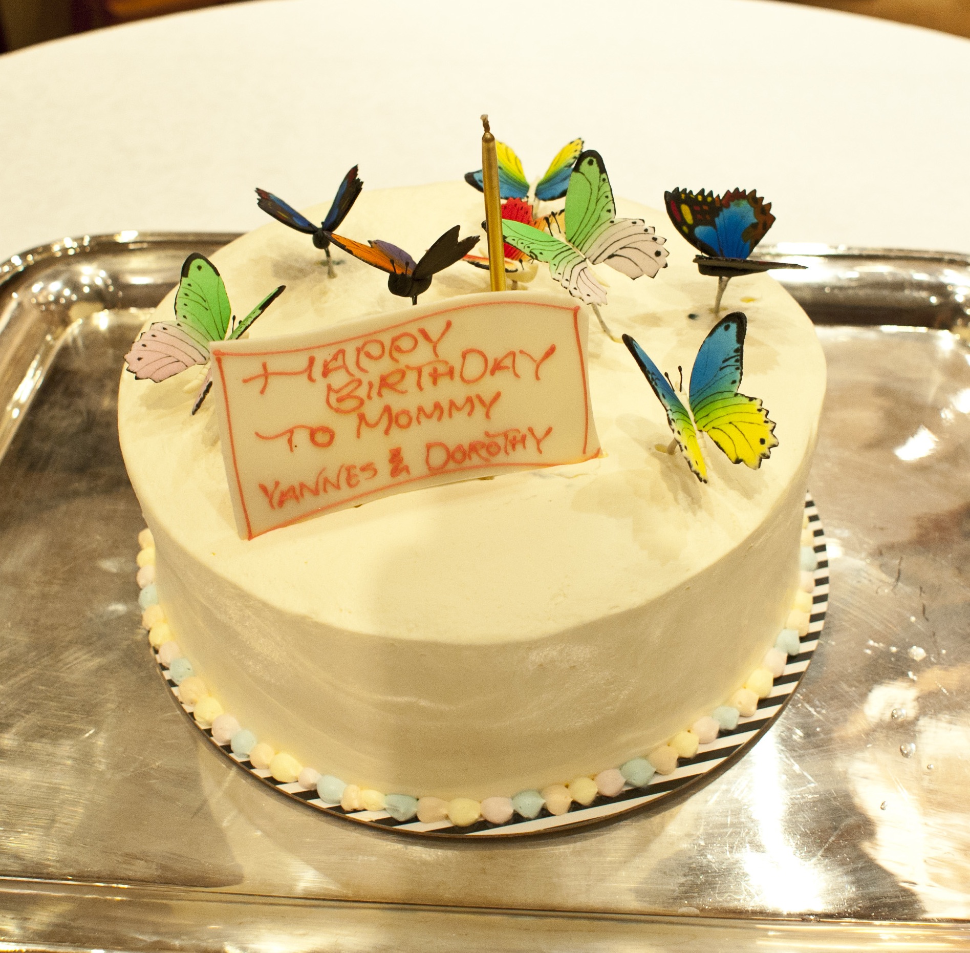 到母親生日那天, 打開餅盒,十數隻蝴蝶在白色的蛋糕上飛舞。蝴蝶高貴脫俗, 外表簡單, 內在的設計,絕對令人驚訝。