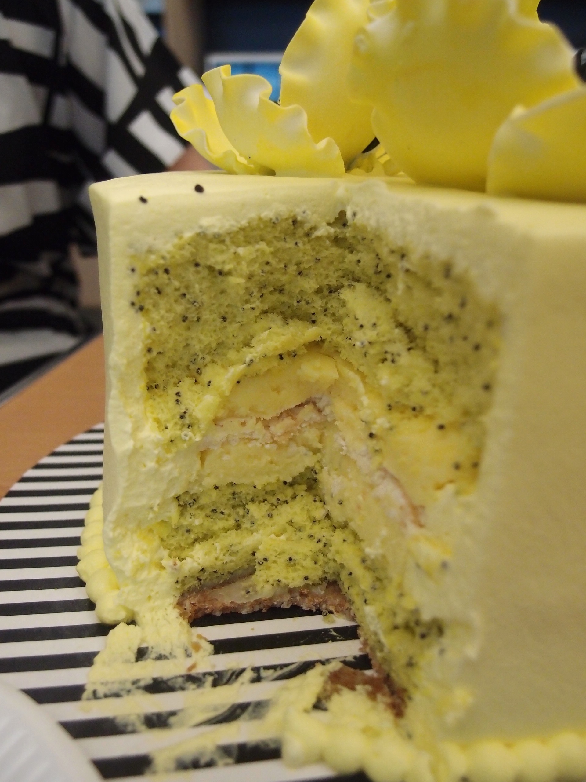 Sunshine, 蛋糕用了黃色做主調, 味道是檸檬口味配上罌粟籽, 口感跟之前兩個蛋糕一樣也非常鬆軟, 微酸的檸檬味道, 食完感覺很fresh呢~ 罌粟籽本身沒有味道, 但有豐富的維他命E, 很健康!!