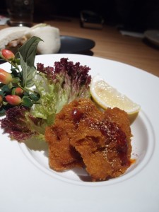 風神雷神脆炸雞翼 ~ 外皮炸得有點硬, 不夠鬆化; 雞翼拆骨起肉, 肉質夠嫩, 略嫌肉汁有點不夠; 而且醬汁也好像少了一點, 如果可以另上, 讓食客自行蘸來吃, 應該會更好吧。