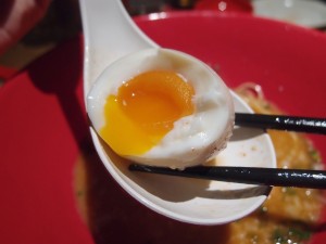 這天還加了一隻半熟蛋, 雖然是流心, 應是我的favourite, 但因為沒有經過醬油滷, 總覺得好像缺少了一些味道似的, 難免有點失望呢~