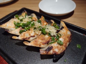一風堂餃子 ~ 這裡的餃子是用鐵板上的, 所以餃子上檯還是熱騰騰的。讚! 餃子皮薄, 裡面是日本白菜, 加上少許雞肉, 肉汁足夠, 非常的讚, 是多款小食裡面我最愛的一款呢~