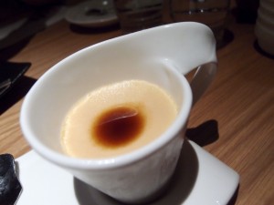 麵豉布丁 ~ 平時喝麵豉湯比較多, 用麵豉去做布丁也是第一次吃到。其實這個是雞蛋布丁配最上層的麵豉醬, 最初第一口吃下去好像怪怪的, 又甜又咸, 不過吃多兩口, 卻覺得幾特別。 雞蛋布丁蛋味不太濃, 配上超重味道的麵豉, 其實可以中和兩者之間的味道, 越吃越覺得不錯喔。