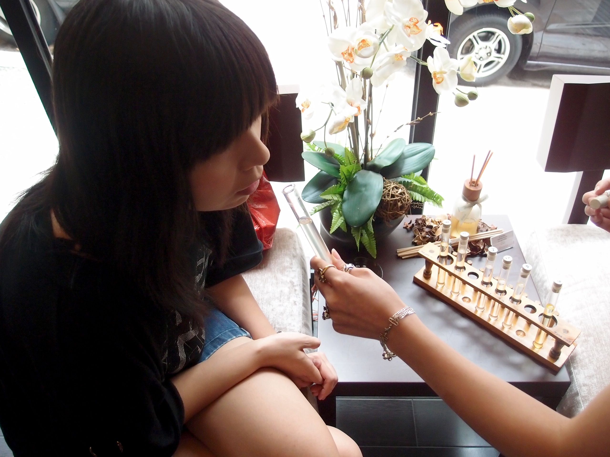 雖然今次做的是Foot Spa, 但過程一點也不馬虎, 跟平常去做Spa沒兩樣。店員先給我聞一聞不同功效的香薰油, 再自行挑選喜歡的一款。記得上次在泰國Divana的時候, 我選了具美白功效的玫瑰味, 所以今次特別挑選不同的, 揀了有排毒作用的葡萄柚味的香薰油。