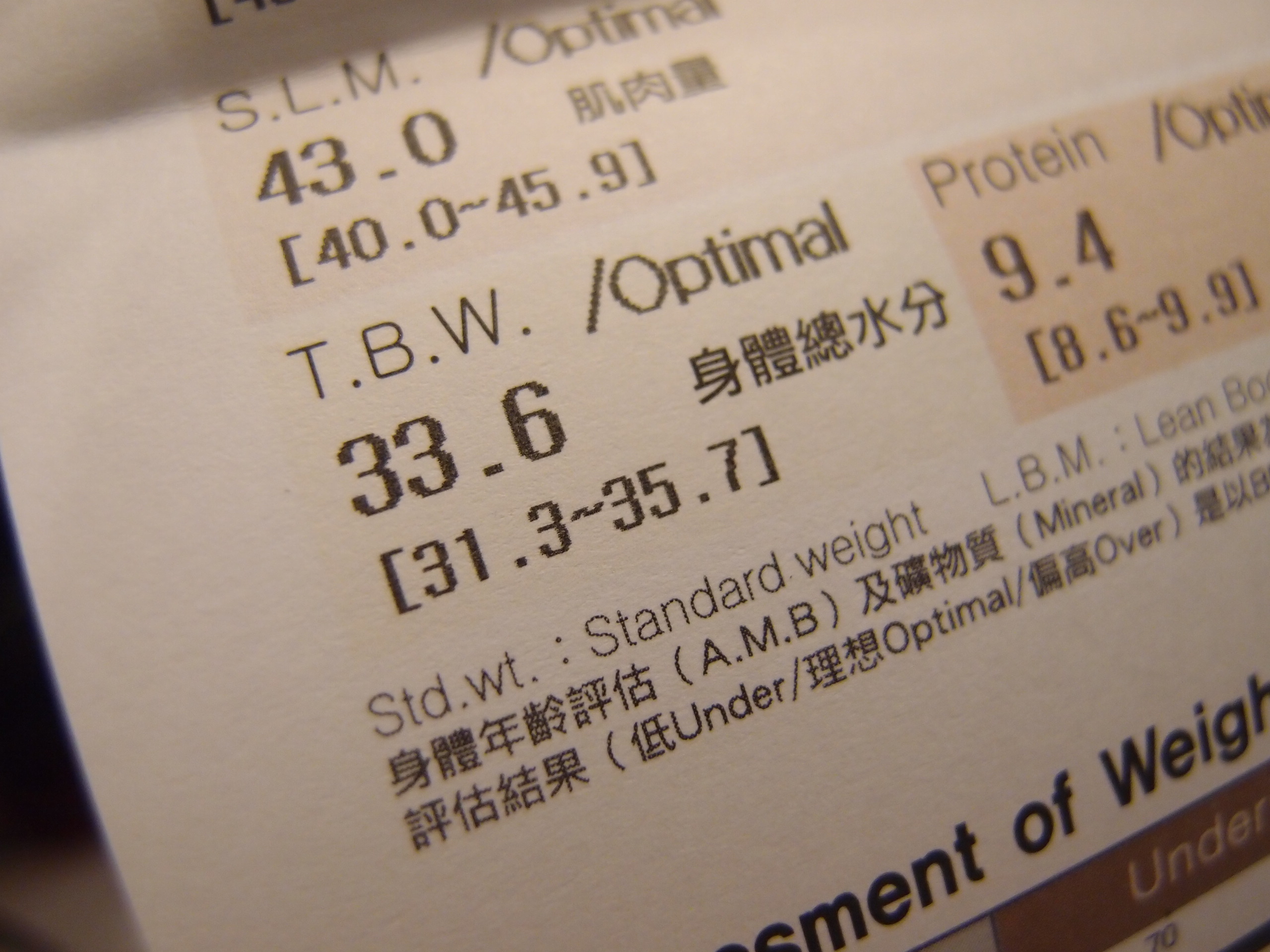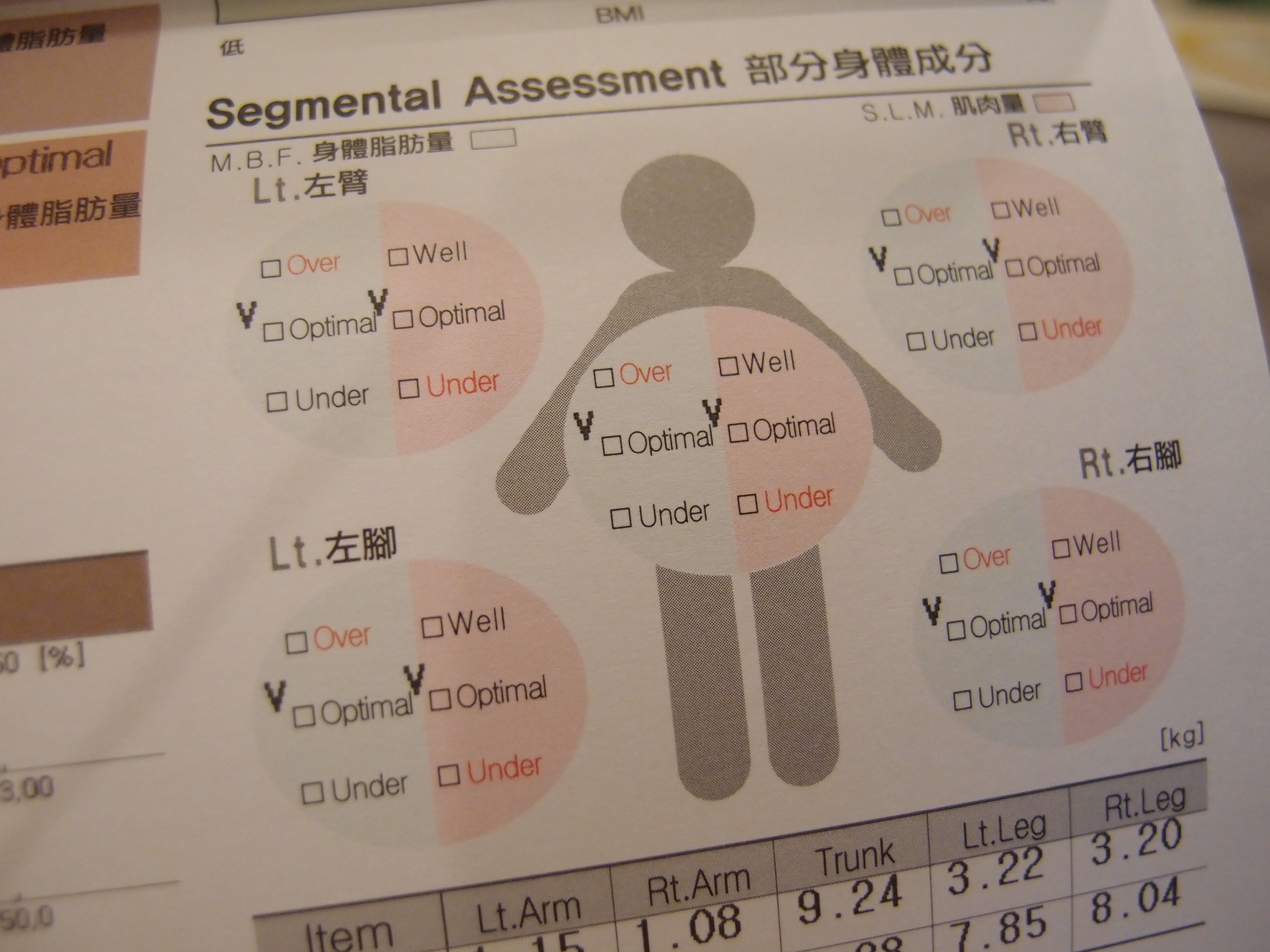 今次這個身體成份的圖表, 終於可以見得人, 因為全部都是Optimal呀, 即是說全部都是正常, 沒有Over也沒有Under, 很高興呢~~