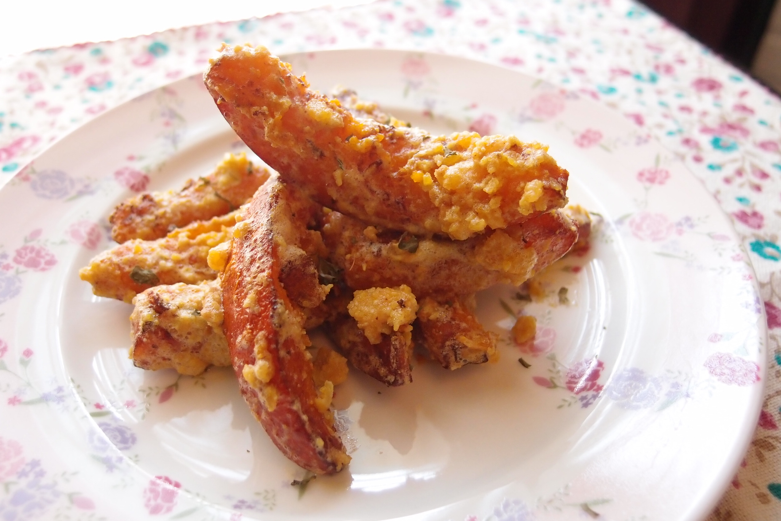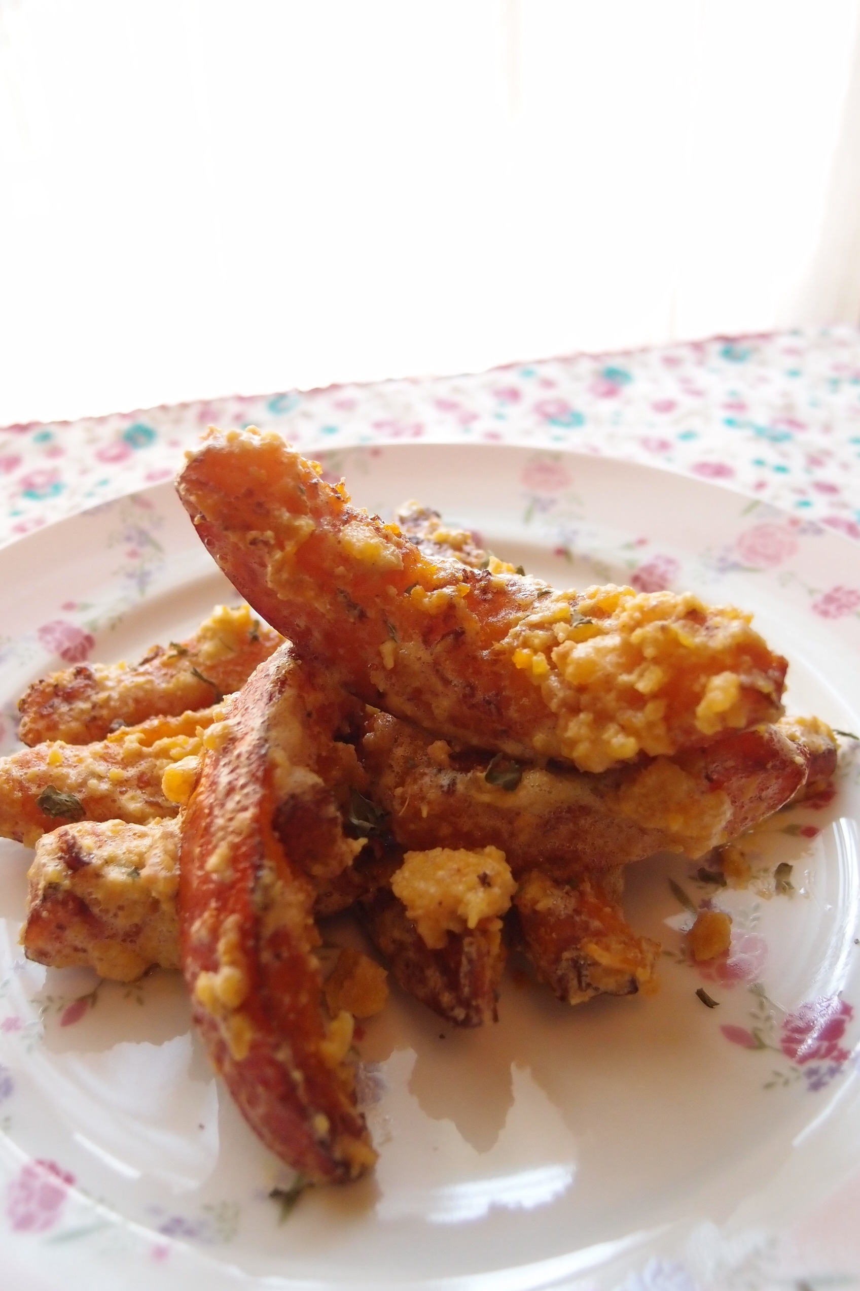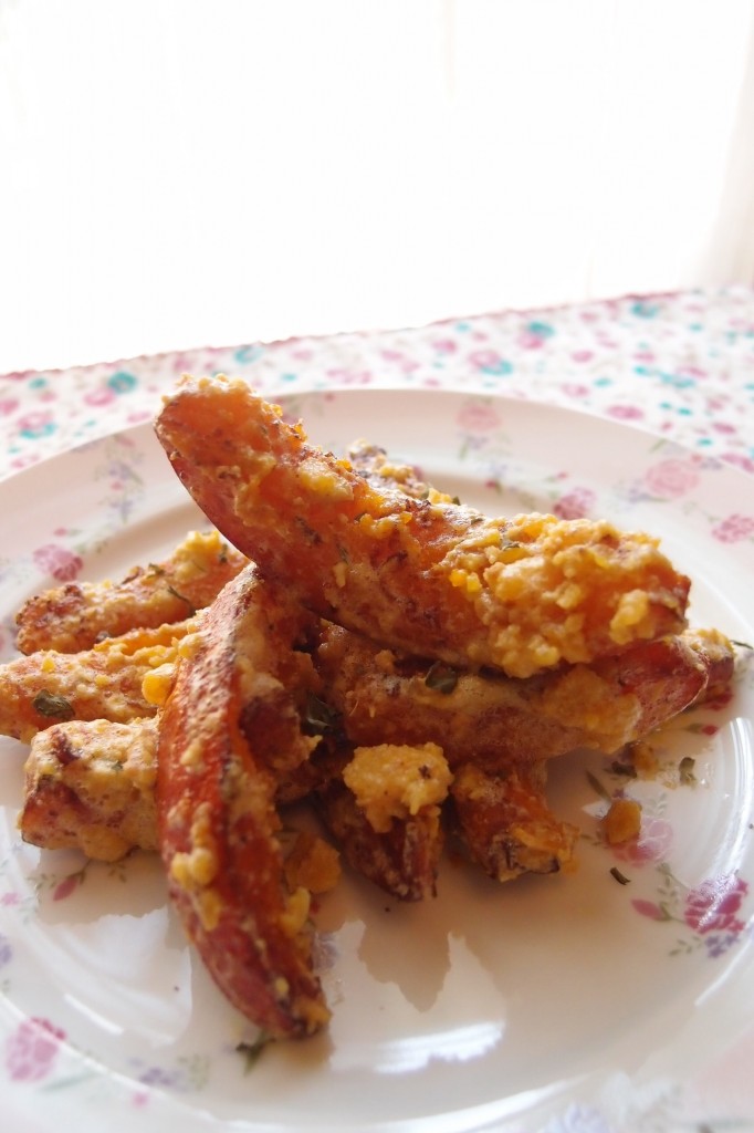 6)將少量鹽灑在南瓜表面,再輕輕拍上粟粉。