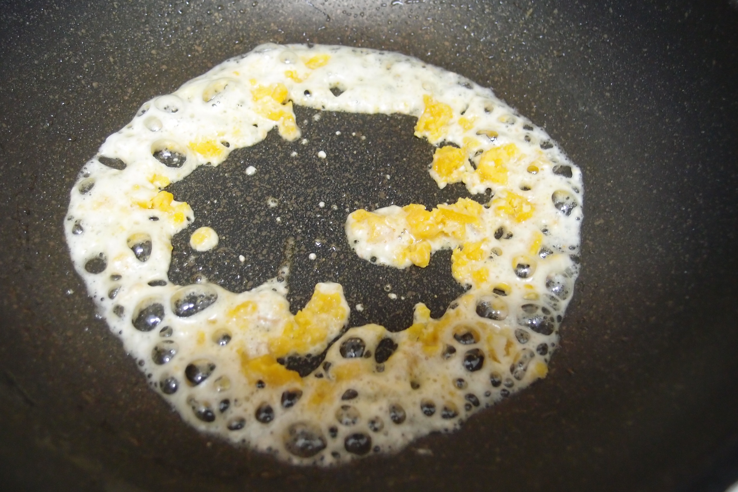 8)再燒熱鑊,落1湯匙油,以中火將咸蛋黃快炒。