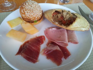 那麼就精選一些介紹給大家吧!吃自助餐,我通常由冷的吃到熱。第一回通常都是沙律,火腿,或是海鮮呢~巴馬火腿吃進口,夠咸香,吃後味道留在舌頭上久久不散,用來佐酒當小吃,一流!還有原隻的麵包蟹,勁多蟹膏,看到下面的照片裡的蟹蓋嗎?全都是香軟的蟹膏!正!一口雞肉漢堡,肉質夠juicy,麵包又鬆軟,是必吃的!還有,喝酒當然不少得芝士啦~