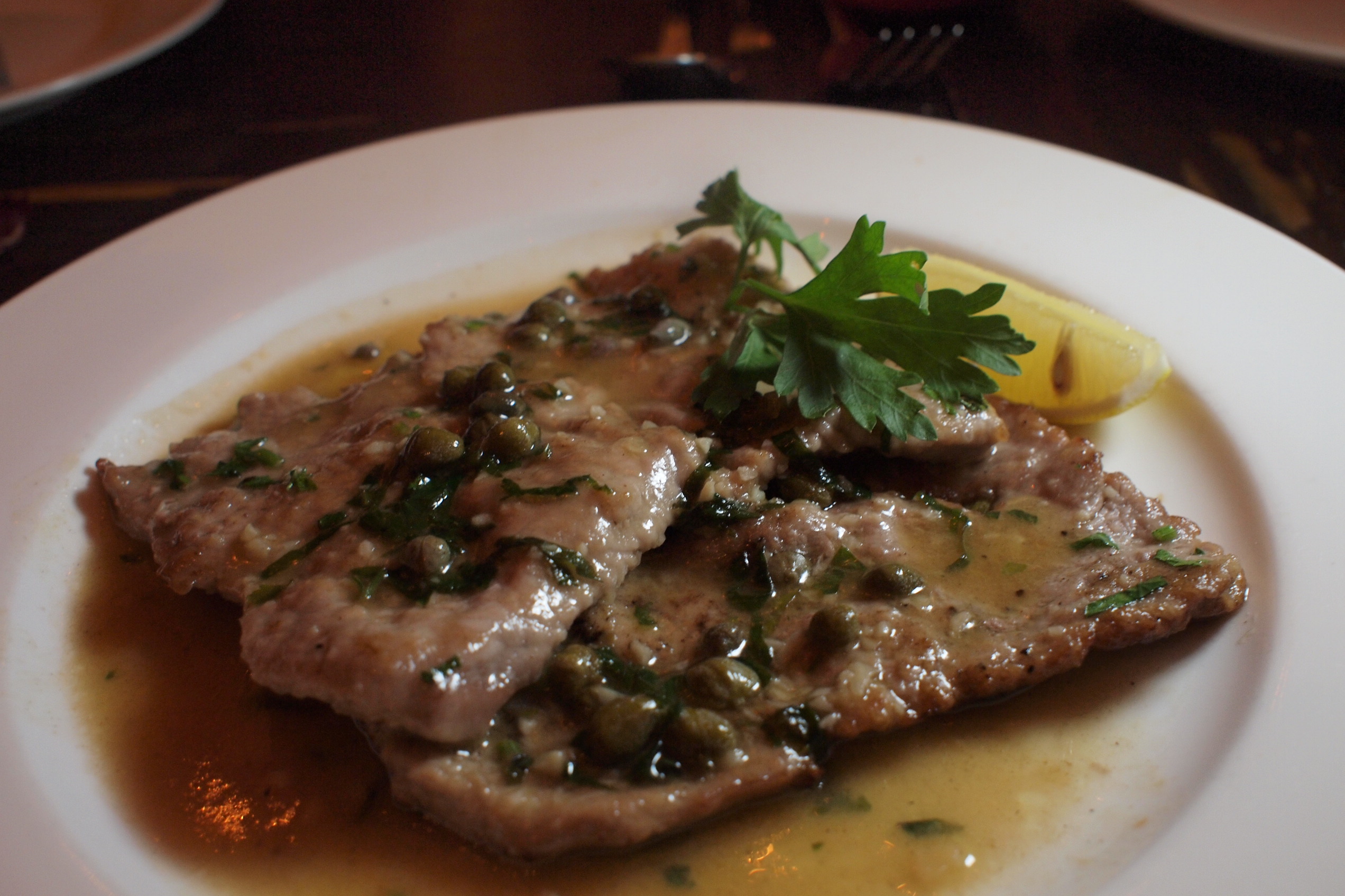 Veal Piccata – 超薄的小牛仔肉配了帶點檸檬味及Capers的醬汁,牛仔肉嫩滑可口,醬汁微酸夠醒胃!