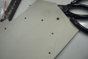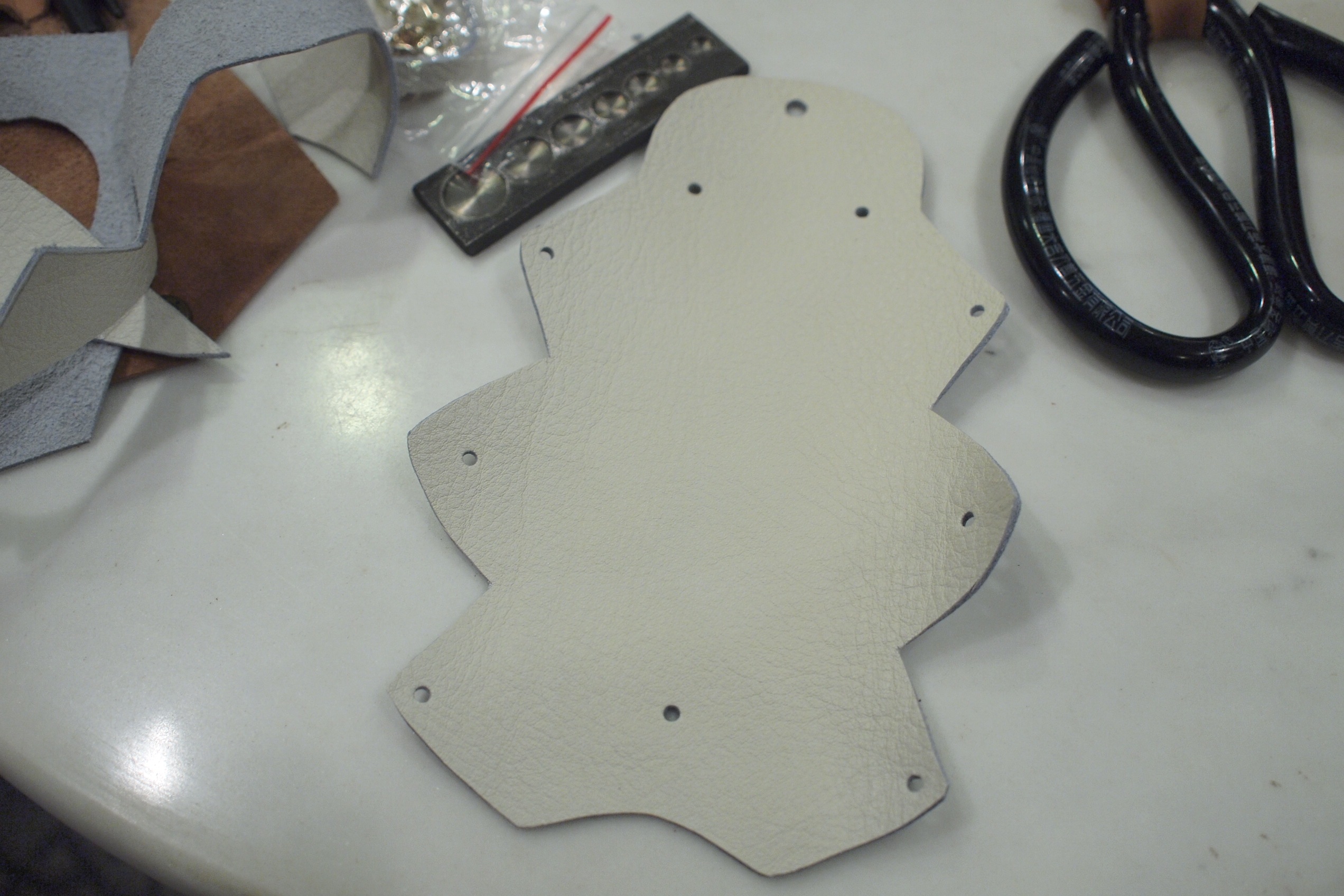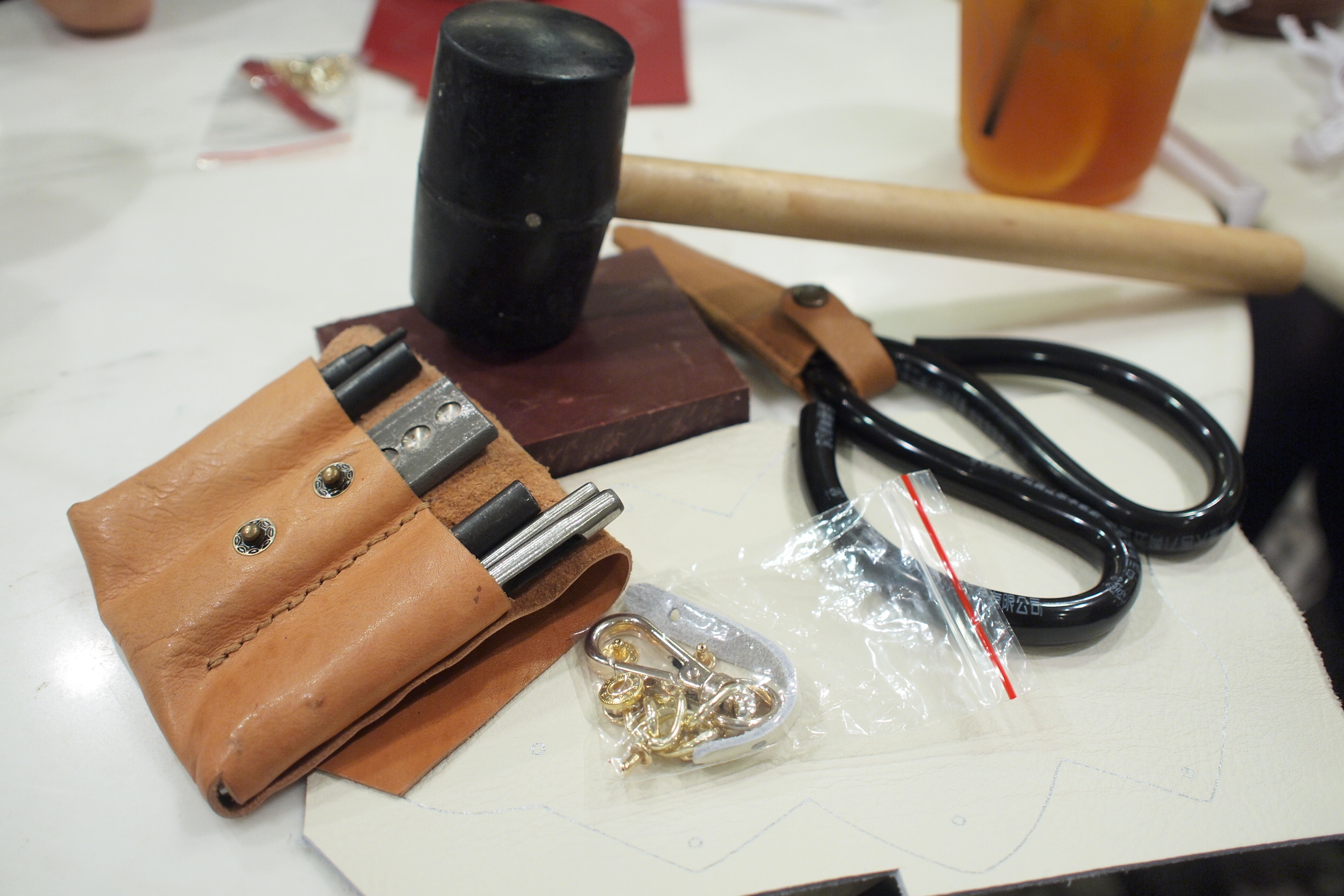 我們一人一份材料,有一塊leather,還有一些螺絲釘鈕扣,當然不少得一些輔助的工具!