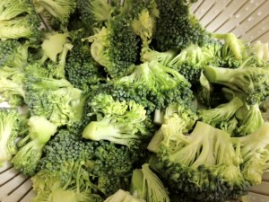 3) 西蘭花洗淨,去莖,切成小件。再燒熱一鍋水,下油鹽將西蘭花灼至4成熟, 隔水備用。