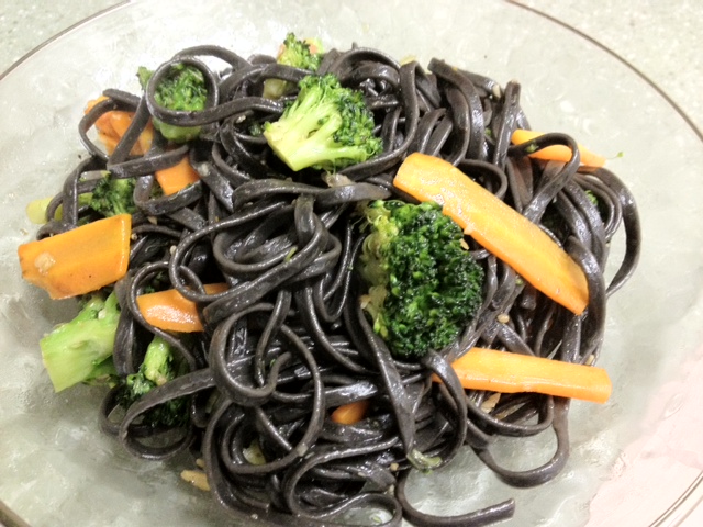 今次做的是「蒜香西蘭花墨汁扁麵」,沒有加肉類。不加肉類最主要是因為最近晚餐吃得太多, 午餐想吃得清一點。這個扁麵準備的時候不長, 半個小時之內絕對可以完成得到。
