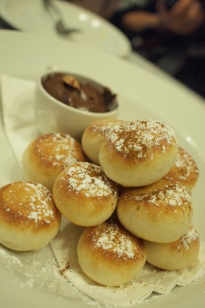 另外還有Snowball, 其實就是頭盤吃到的麵包球的變奏。在麵包球灑上一層糖霜, 蘸朱古力榛子醬吃, 很魔鬼的吃法! 這天晚上我足足吃了三個, 而且令一個都是完完整整的將麵包球蘸上滿滿的朱古力榛子醬!! 大愛呢~~
