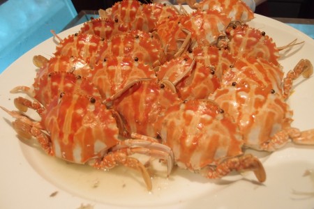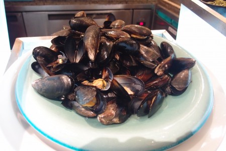 晚上七時去到,等齊人即開餐。食物選擇非常多,絕對能令人有選擇困難症。吃自助餐,我習慣先吃沙律,再吃冷盤上的海鮮,有青口、長蟹腳、紅蟹、生蠔、翡翠螺、東風螺,全部源源不絕地供應。我最喜歡吃青口及蟹,當然主攻這些啦~青口跟紅蟹,我想我足足吃了三大Round!紅蟹雖然細隻,但肉質好鮮甜;青口好嫩,唔錯;至於長蟹腳,海水味不俗,肉質爽甜,正!吃了這麼多,很滿足呢~