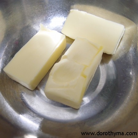 1)牛油置室溫放軟,備用;(用手指按下牛油,是軟就可以了。)
