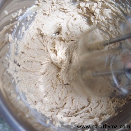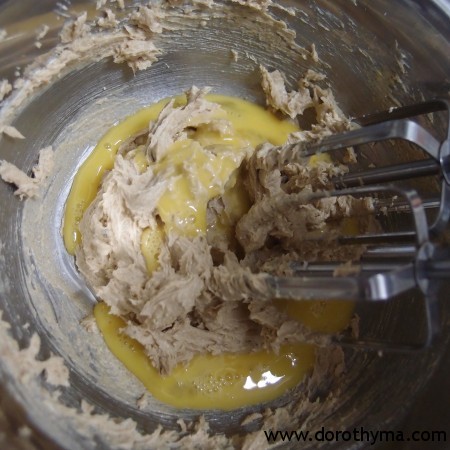 1)將已放軟的牛油,用打蛋器跟砂糖打至cream狀。