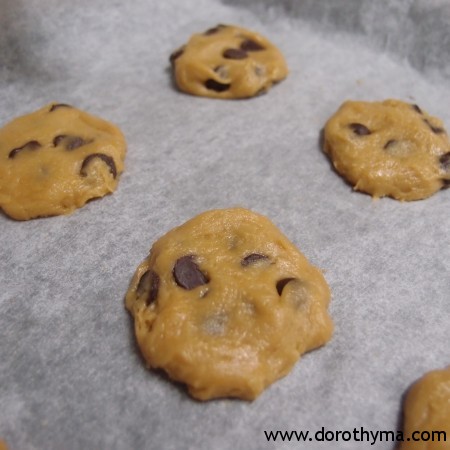 5)將麵糊分成小份,用手壓平放在焗盤上。