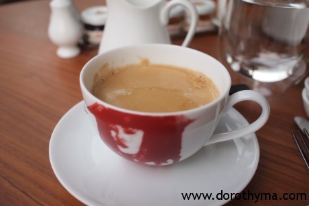 之前也有寫過,這家的酒店服務是真的好。這天早上,甫坐下即時便有服務員走來問要喝點什麼。一直看這裡的朋友都知道,在早上我沒有一杯咖啡,絕對會提不起精神的。很多時到外地的酒店,我對他們早餐的咖啡都沒有什麼要求,反正大部份都不好喝,不淡而無味,就是太酸,很多時我都會走出去買Starbucks便算。這裡供應的咖啡中規中矩,咖啡味道香濃,沒有我討厭的酸味。咖啡杯印上的女生圖案,我不知道她是誰,就是覺得很有藝術感。