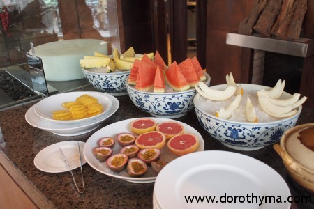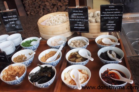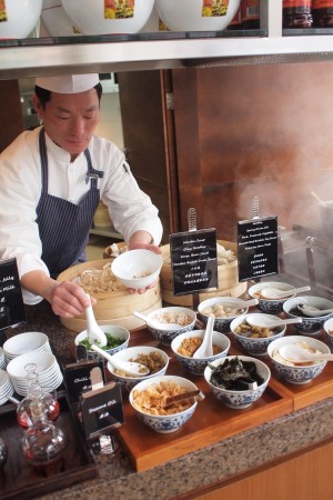 既然餐廳分為兩部份,早餐也有分西式及中式的,全都是自助形式。雖說我留在酒店四天三晚,我卻因為睡晚了,所以只吃了一個早餐。唯一一天有吃酒店的早餐,我選了中式那邊,吃的都是地道的上海早點。走進中餐區,第一看見到是開放式廚房,有一半的食物都是由廚師即叫即做的,很讚。
