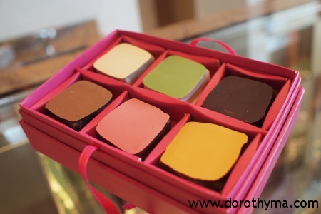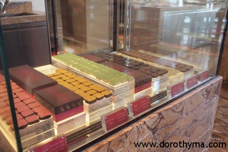 除了蛋糕及麵包外,還有一個朱古力櫃,放滿不同口味的朱古力,都是店方自家製的。口味方面,除了平常吃過的特濃咖啡或芝麻味,也有一些超特別的口味,五粮液及四川胡椒味道的朱古力,你吃過沒有?我試了一粒五粮液朱古力,酒味沒有想像中濃烈,比平時吃過的香檳朱古力,這個是挺特別的,朱古力的質地也很滑呢~