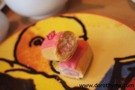 這天我點了一個紅桑子的Eclair來試試~泡芙質地微軟鬆化,中間是紅桑子夾心微酸,是很香的紅桑子味道,吃完感覺很清新,而且味道不太甜,很不錯~