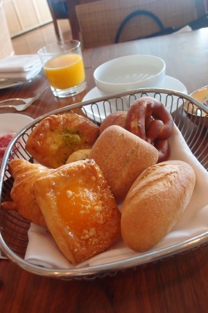 服務員送上香檳的同時,還有一個還是溫熱的麵包籃。這些麵包,其實在麵包台也有得拿,不夠吃的話,還可以再添。麵包的質素看上去是絕對不錯的,我試了牛角酥,做得幾酥脆鬆化,豐富的牛油味道。