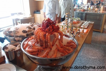 甫坐下服務員便送上了Perrier Jouet香檳,是我最愛的巴黎之花呢~不過這天沒有喝太多,原因是之前一晚跟朋友玩到天亮才回酒店,睡了三小時便起床執拾行李Check-out來吃Brunch,嚴重缺睡情況下,就算放再多我喜愛的香檳在前面,也喝不多吧~還有吃完Brunch便上機回香港,也沒理由喝到醉醉的走上機吧?!