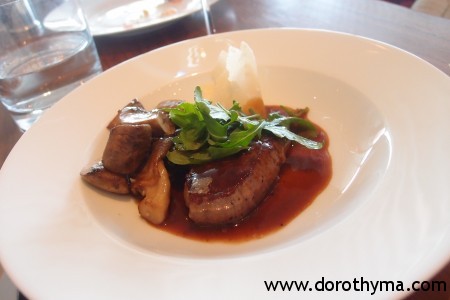 吃完左口魚,再選了煎牛柳,要求了六成熟的。澳洲牛柳肉味重,而且肉質夠腍。廚師拿捏時間得夠準確,果然是六成熟的,切開後,中間還是粉嫩的粉紅色。大家看到這個牛柳的擺碟,不說是Sunday Brunch的,可會以為是普通單點的牛柳嗎?賣相也太讚了!