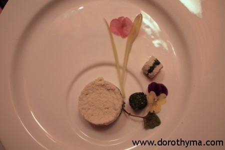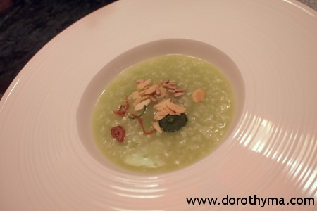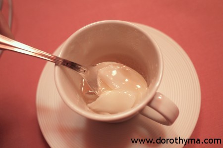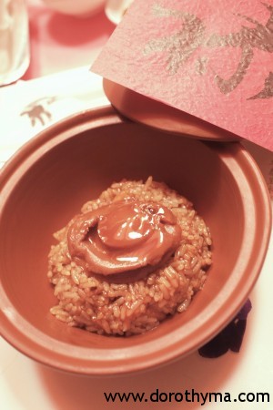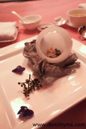 湯品是泡沫烏魚蛋湯,烏魚蛋湯用小杯子盛著,不說我還以為是咖啡,大家說跟平時我們喝的cappuccino有大分別嗎? 這就是去<大董>用餐的驚喜,當看到每道菜的presentation,都有驚喜!