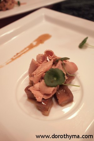 這味桂花糖藕配鵝肝對我來說,亮點在桂花糖漬蓮藕,卻不是鵝肝。不是說鵝肝不好吃,只是我更愛吃這個糖藕!原因這個糖藕裡釀了少許糯米,吃起來軟糯香甜,帶陣陣的桂花香,跟口感幼滑被刨成片的鵝肝一起吃,非常的配。