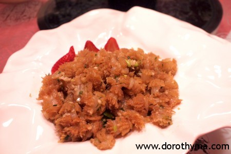 大董最signature的酥不膩烤鴨,有三種不同的食法,每一種都能令人留下深刻印象。酥香不膩的鴨皮,蘸砂糖吃,是最深得我心的一個食法,入口一點也不膩,誇張的說句是「入口即化」呢~