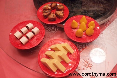邊吃荷葉粥,邊有四款北京地道甜點捧上,包括有: 綠豆糕、炸卷果、奶卷、小窩頭,全部都小巧精緻,但我真的太飽,沒有逐一品嚐。最後只嚐了少許綠豆糕,綠豆味道濃郁,做得真的不錯,在香港實在難吃到這樣的綠豆糕。