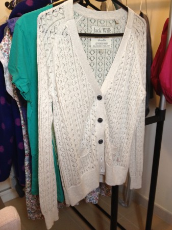 夏天經常出入冷氣地方,最常帶在身的不是圍巾就是外套,這件通花的棉質外套,不會太厚,出入冷氣地方時穿著一流。Fereday Cardigan (GBP 59)