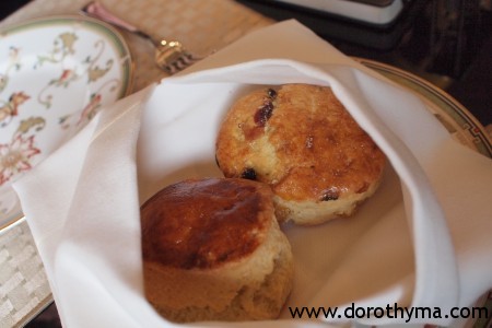 英式鬆餅方面,一個plain,另一個有提子的。我比較愛吃Plain scone,總覺得這樣能吃到scone的原味~ 不過這裡的Scone有點乾,不是好吃的一種,奶香是有的,但很難才吃得到。