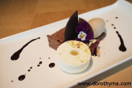甜品時間,左揀右揀,捨棄了平時一定會叫的Chocolate Bento Box,而揀了一個未吃過的甜品叫Idola (GBP 10.50)。有Sacher Torte Sponge、Yuzu Parfait、Raspberry Stream Curd及Slow Roasted Hazelnut Ice Cream。Sacher蛋糕的朱古力味好重,跟柚子parfait一齊食,中和返朱古力的味道。又或是將超香榛子味的雪糕跟Sacher蛋糕及柚子parfait一起吃,三個味混在一起,真係味蕾的享受。唯一失望是那件Raspberry Stream Curd,紅桑子味不重,沒有酸也沒有甜,怪怪的。