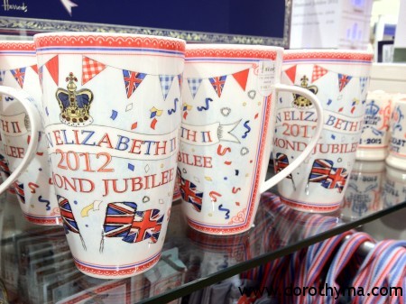 今年是英女皇六十周年登基的紀念,大家叫做Diamond Jubilee,是全英國上下的大事。為了紀念這個moment,不同百貨或品牌都推出了Queen Diamond Jubilee的限定商品,Harrods也不例外,環保袋、圍裙、Tea Towels、Playing Cards等都有~