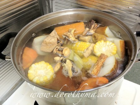 4) 燒熱一鍋水,水滾後將所有材料放入,以細火煲兩個半小時,即成。