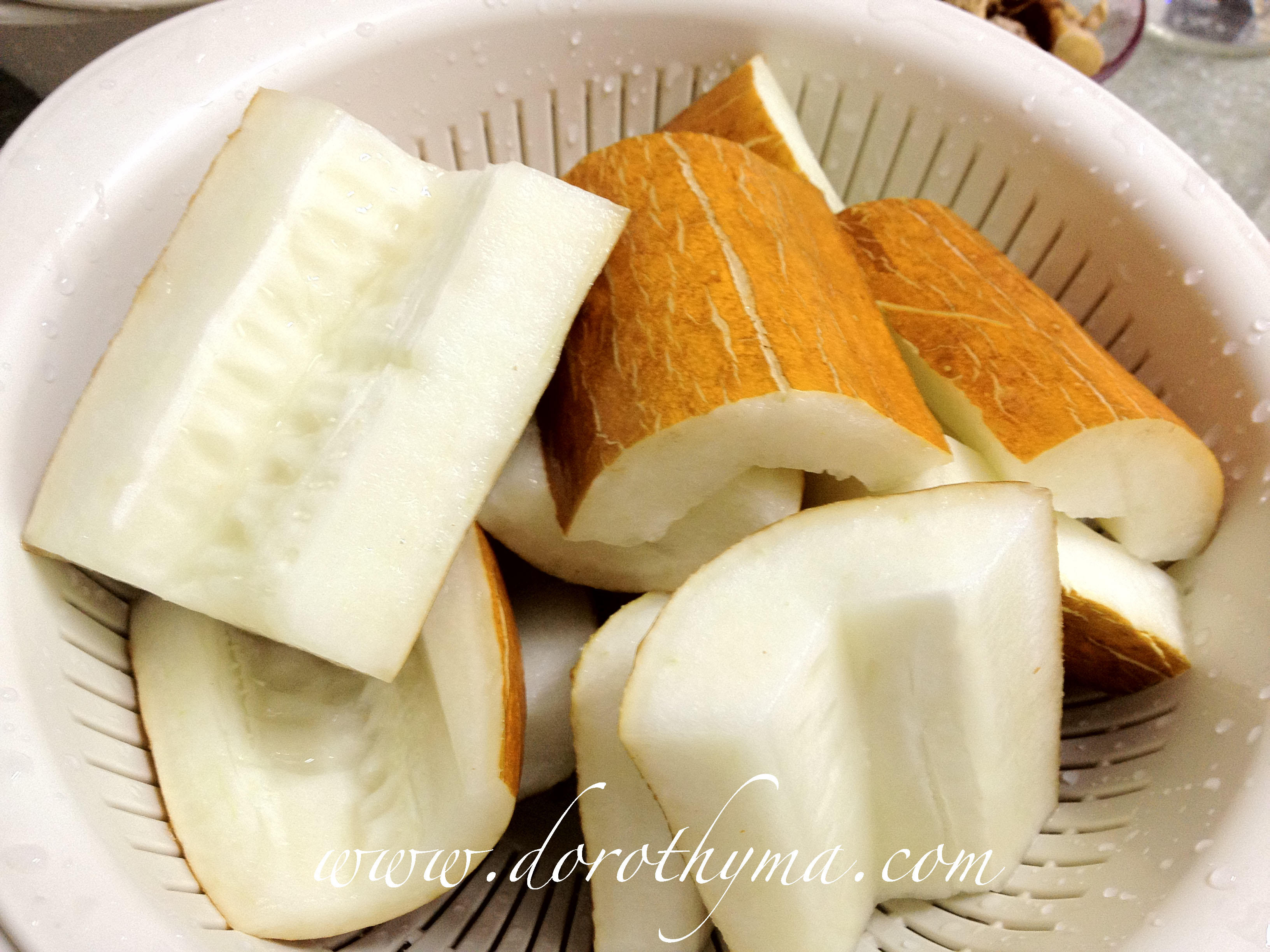 1) 老黃瓜洗淨,去籽榔,切大件。