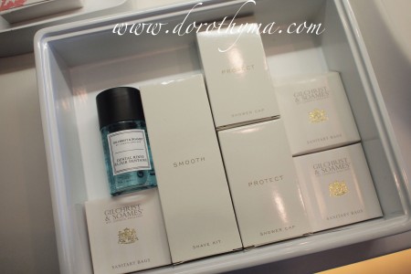 除了一般的牙具、浴帽,漱口水也有,而且還要是英國著名身體護理品牌Gilchrist & Soames來的。
